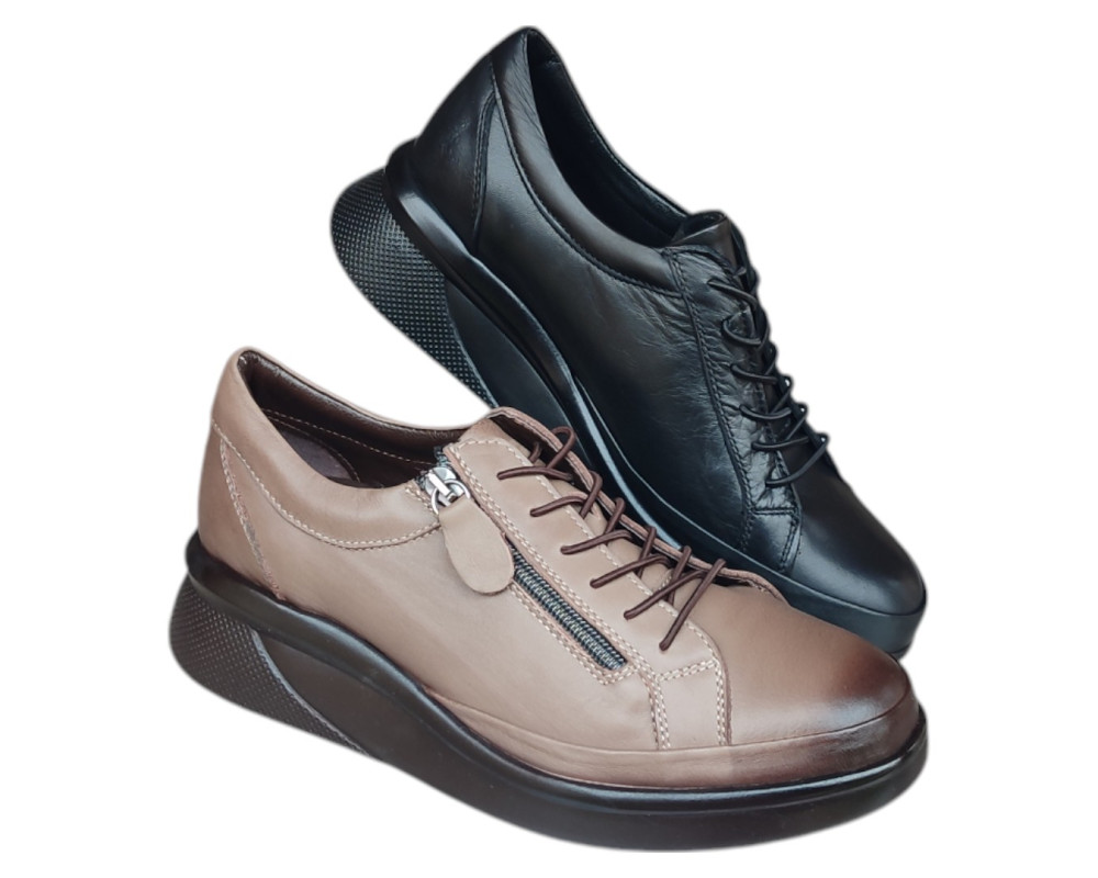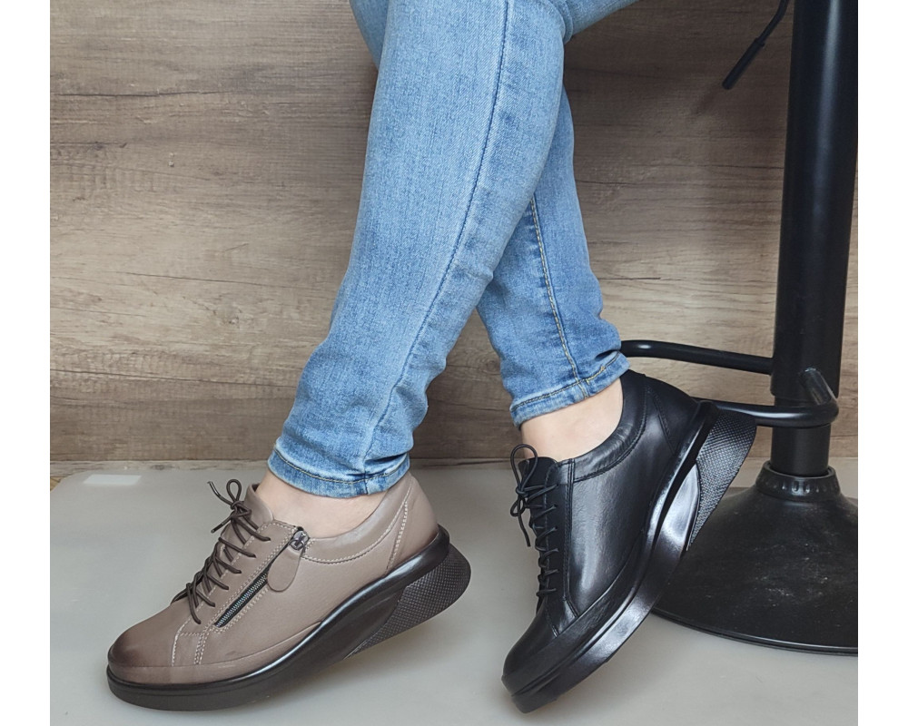 Zenske kozne cipele ART-311 na anatomskom gumenom djonu visine oko 3 na pertlanje,veoma mekane i udobne,rajsferslus sa spoljasnje strane radi lakseg obuvanja.Anatomski kozni ulozak.Raspoloziva u crnoj i bez boji.