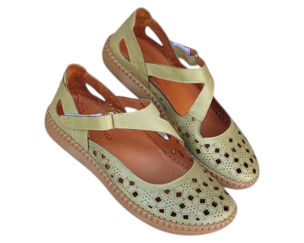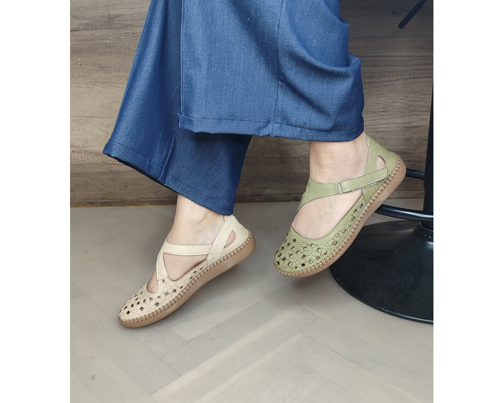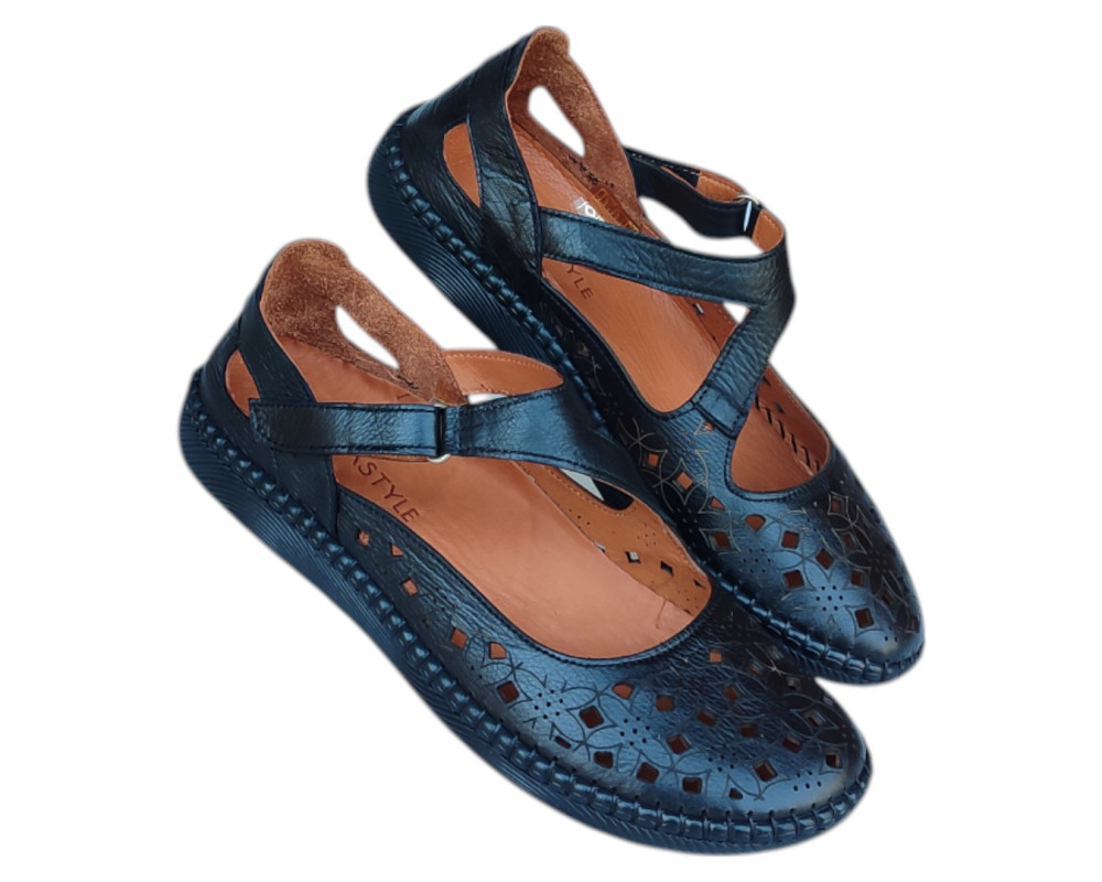 Zenske kozne cipele ART-128.405 na anatomskom FLEXY djonu visine 2 cm,veoma udobna i lagana.Laserski bruseno lice.Kais preko risa na cicak podesiv po sirini.Kozni anatomski ulozak i postava.Raspoloziva u bez zelenoj crnoj teget i braon boji.