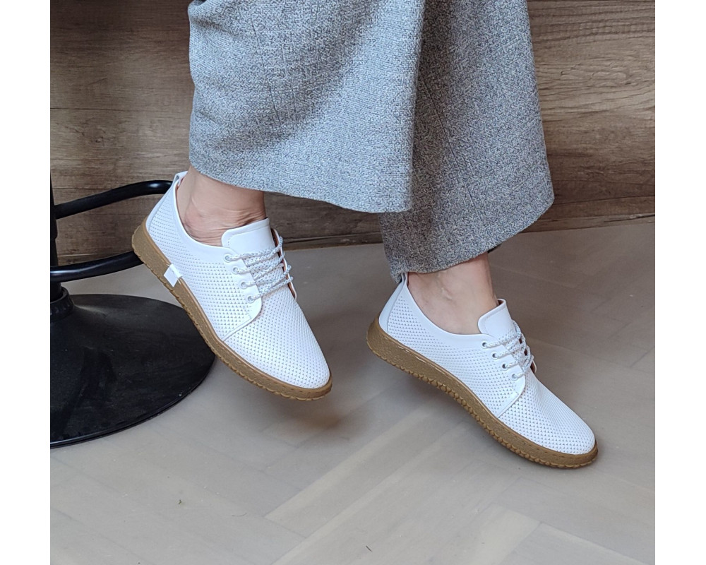 Zenske kozne cipele ART-2186B na pertlanje,na anatomskom flexy gumenom djonu sa koznom anatomskom tabanicom.Veoma udobna mekana i lagana.Laserski buseno lice omogucava nozi da bolje dise.Raspoloziva u beloj boji.