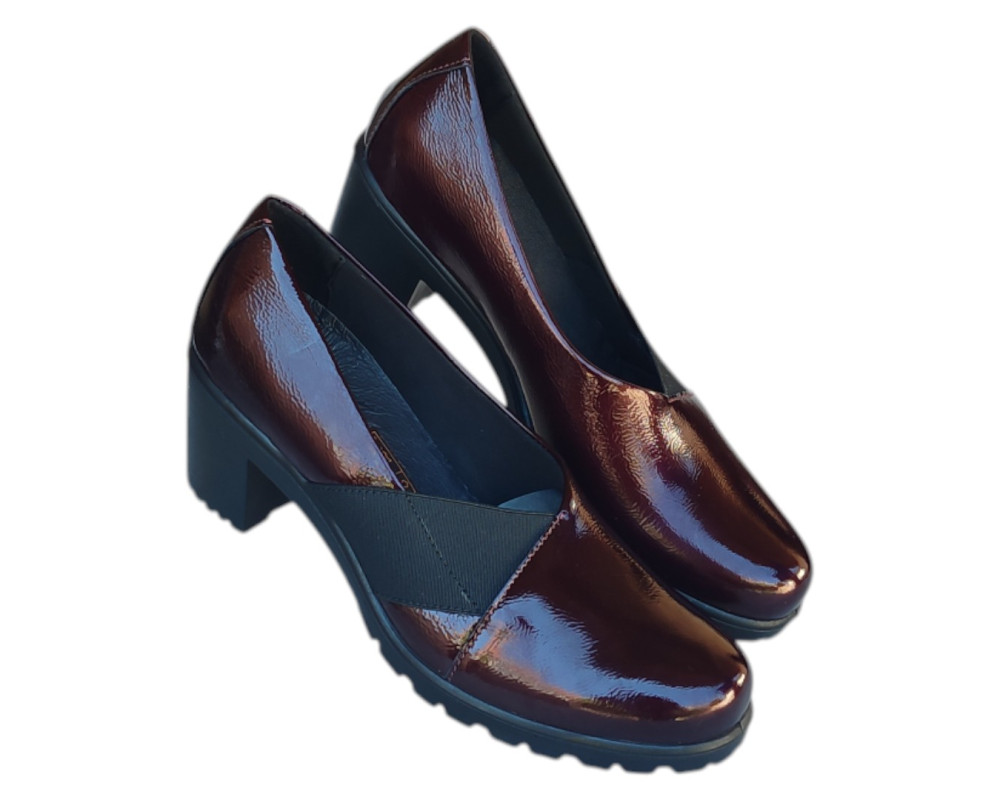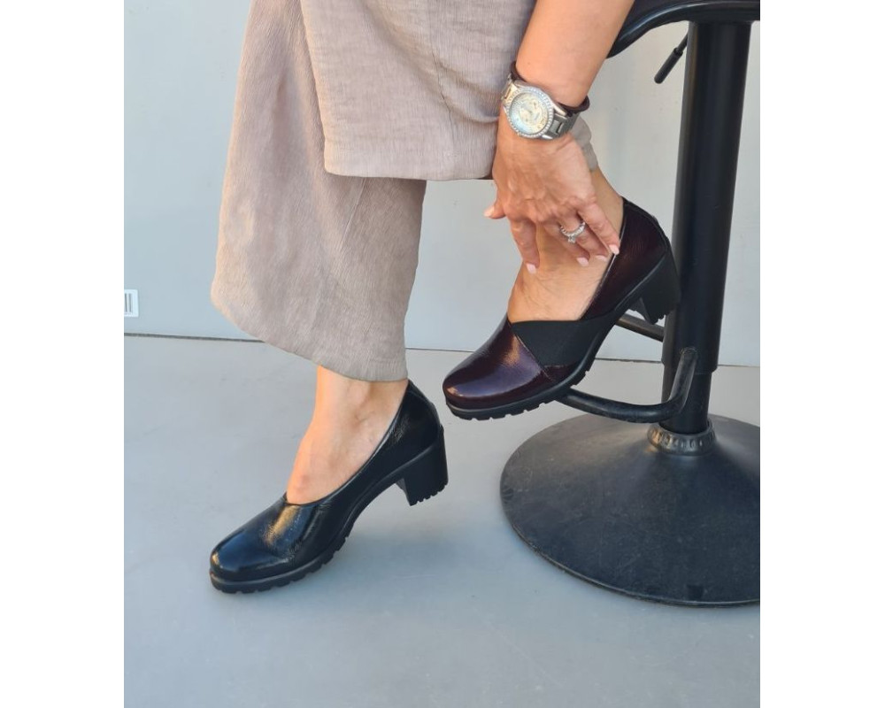 Zenske kozne italijanske IMAC cipele ART-855120 na gumenoj i stabilnoj potpetici visine oko 5 cm sa shock absorberom na peti radi udobnijeg hoda,veoma mekane i udobne.Ugibajuci djon.Preko risa rastegljivi lastis koji poboljasava udobnost i rastereceniji hod.Raspolozive u crnoj mat crnoj lak i bordo boji.