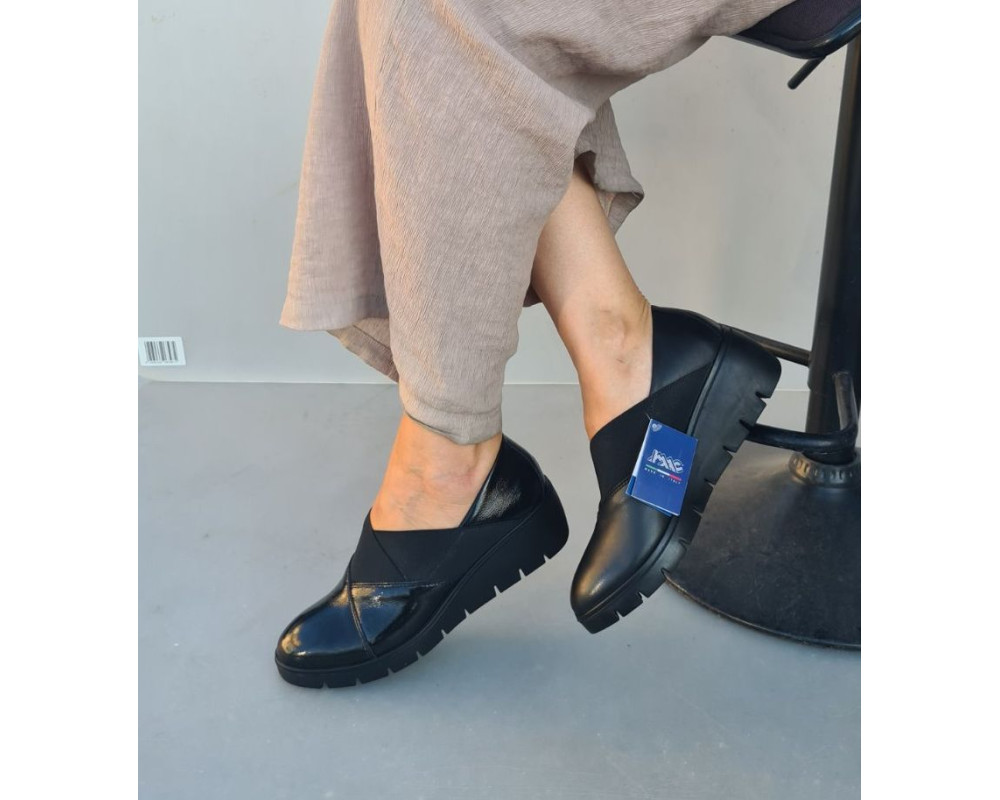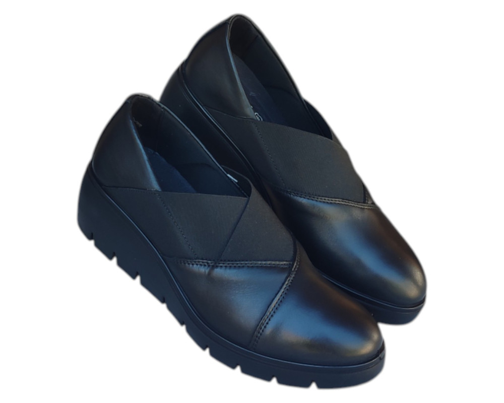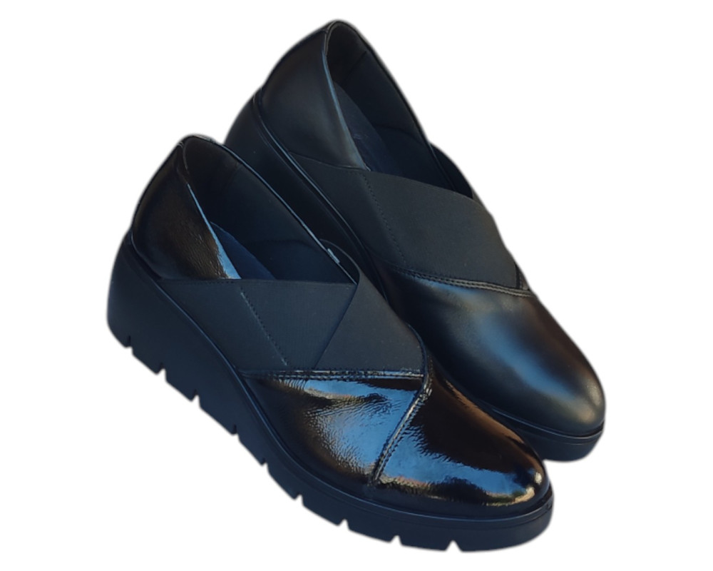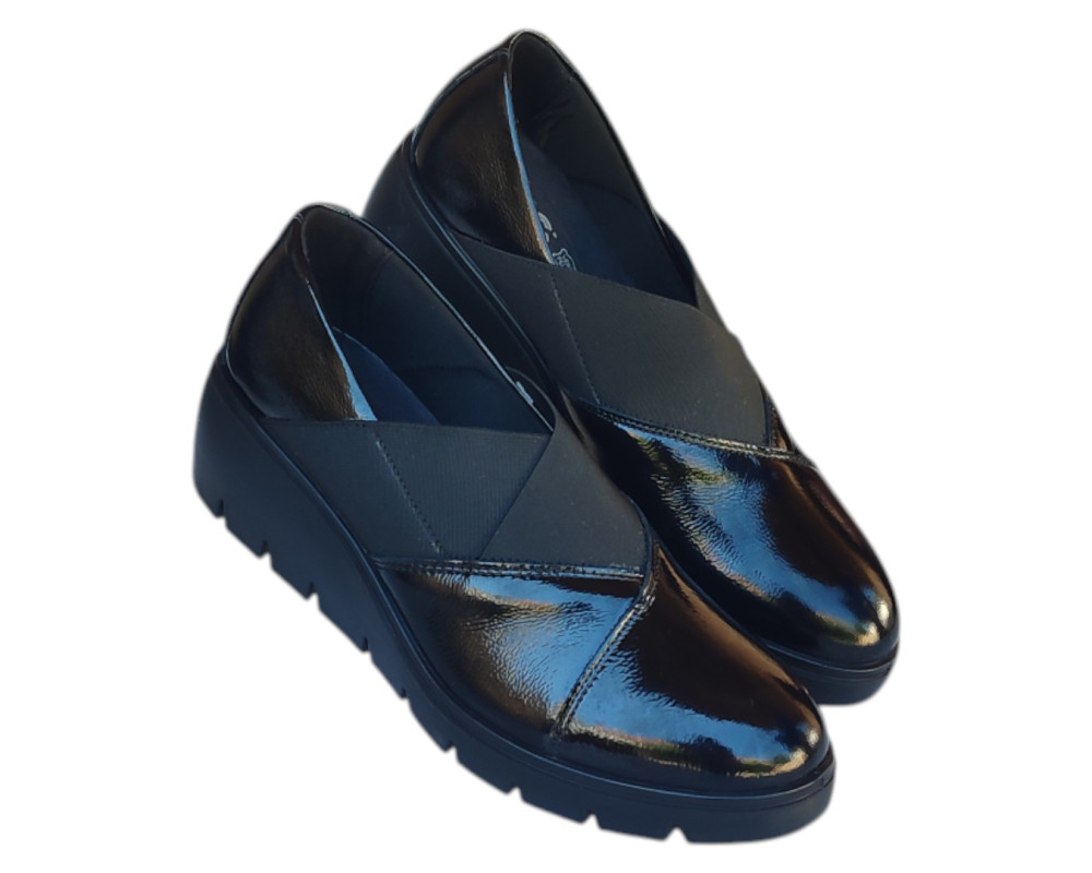 Zenske kozne italijanske IMAC cipele ART-855470 na gumenoj i stabilnoj platformi visine oko 4 cm sa shock absorberom na peti radi udobnijeg hoda,veoma mekane i udobne.Ugibajuci djon.Preko risa rastegljivi lastis koji poboljsava udobnost i rastereceniji hod.Raspolozive u crnoj mat i crnoj lak boji.