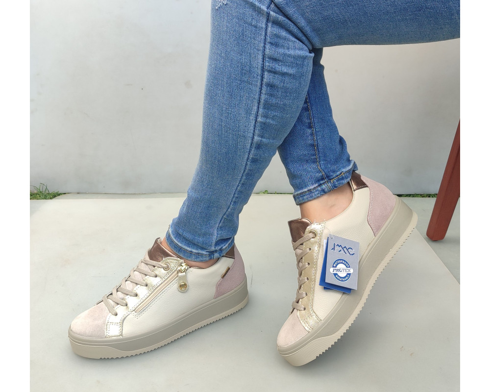 Zenske kozne italijanske IMAC cipele ART-857889 na gumenom djonu na pertlanje visine oko 3 cm sa shock absorberom na peti radi udobnijeg hoda,veoma mekane i udobne,rajsferslus sa spoljasnje strane radi lakseg obuvanja.Raspoloziva u bez boji.