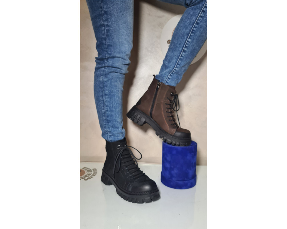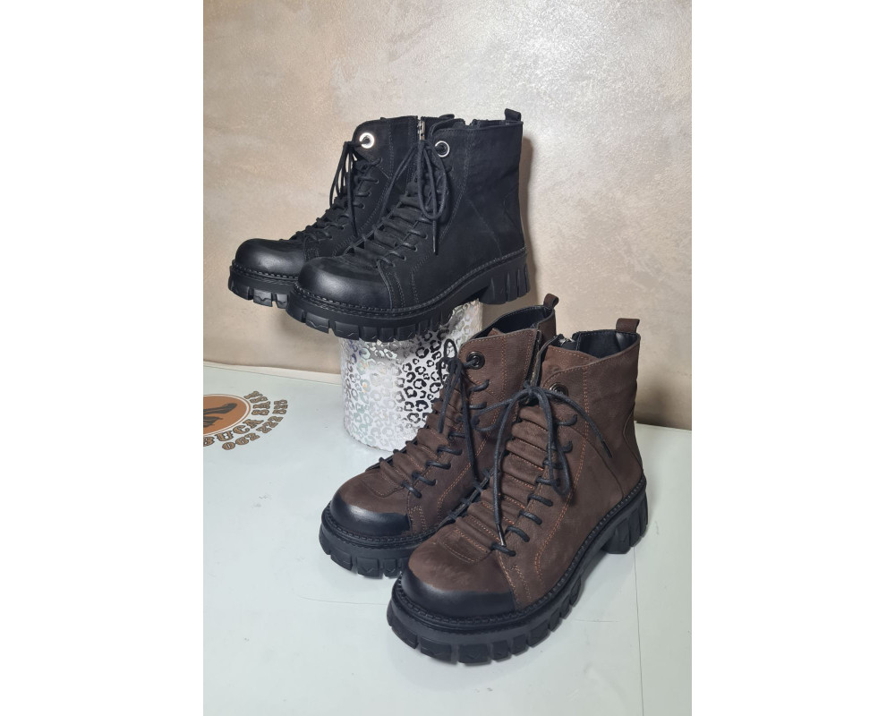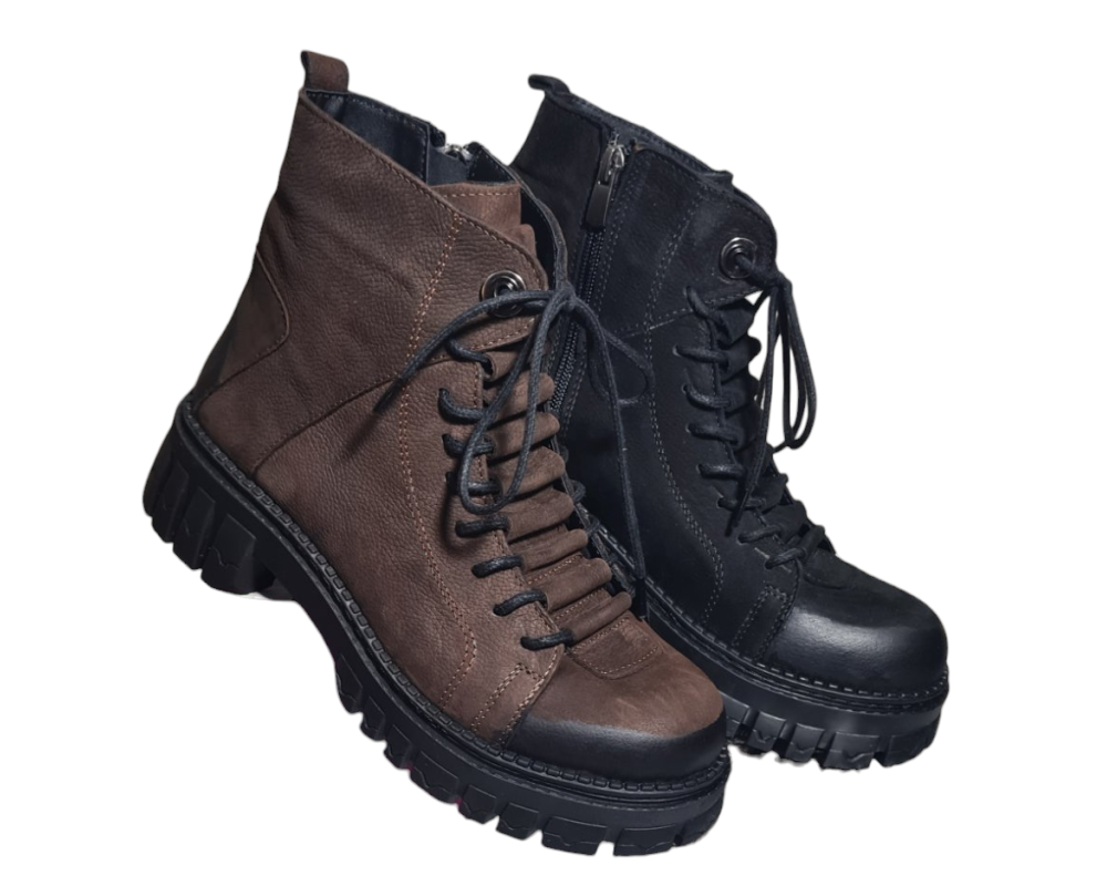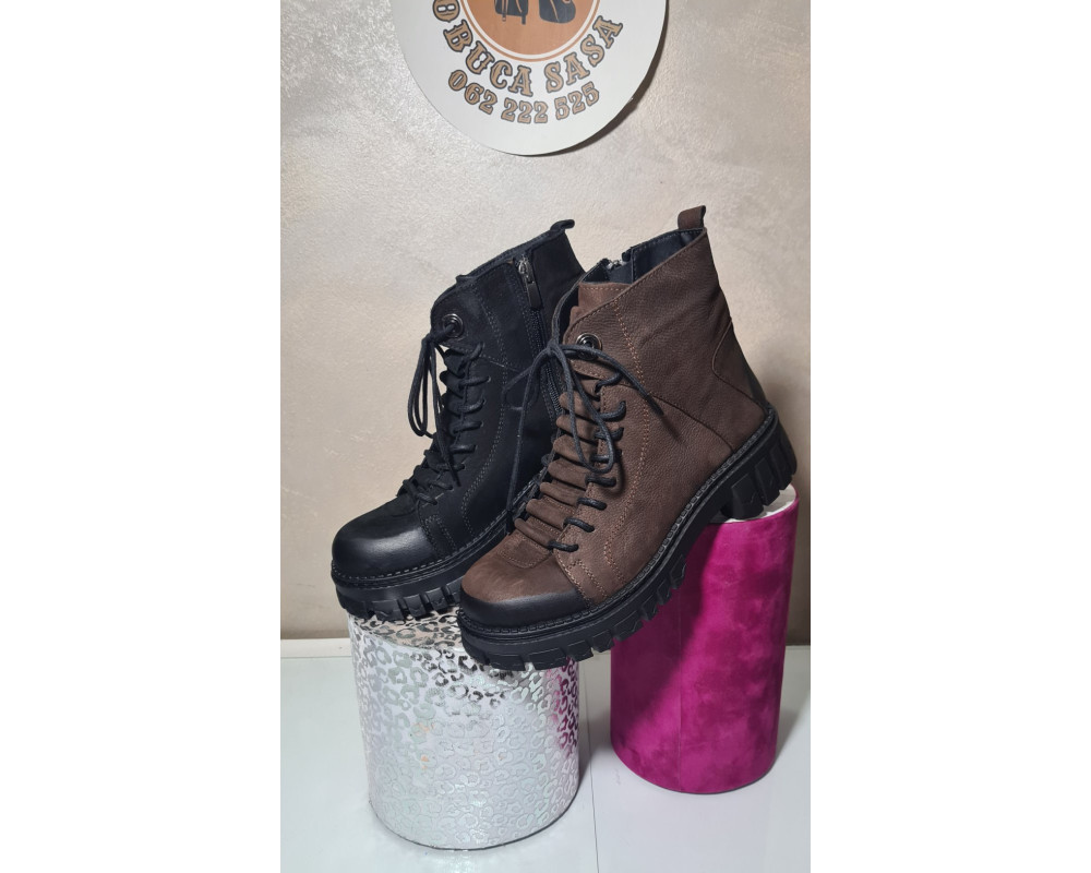 Zenske kozne cizme ART-K50 na gumenom rebrastom djonu pogodnom za klizav teren,visina oko 3 cm,vemoa udobna i mekana na pertlanje.Rajsferslus sa unurasnje strane radi lakseg obuvanja i pertlanje do vrha sare.Toplo postavljene filcom.Raspolozive u crnoj i braon boji.