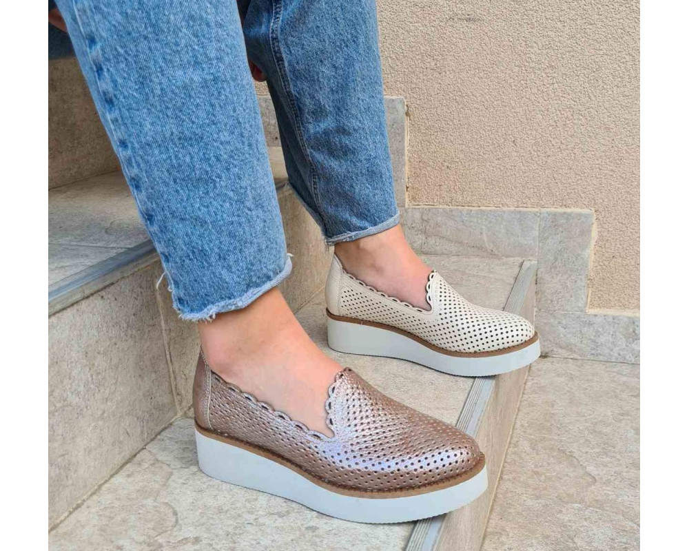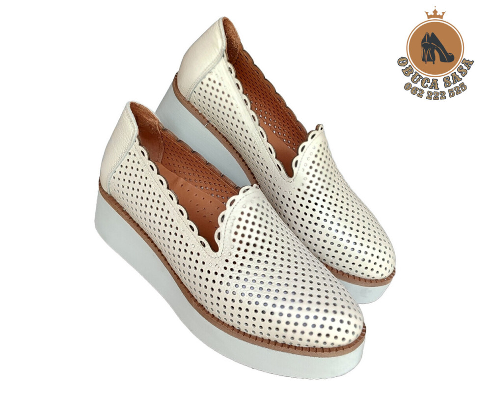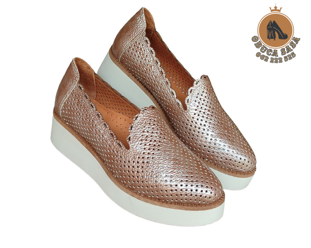 Zenske kozne cipele ART-A677 na anatomskoj platformi visine oko 4 cm sa koznim anatomskim uloskom.Veoma udobna mekana i lagana.Zumbane rupice omogucavaju nozi da dise.Raspoloziva u bez i bronzanoj boji.