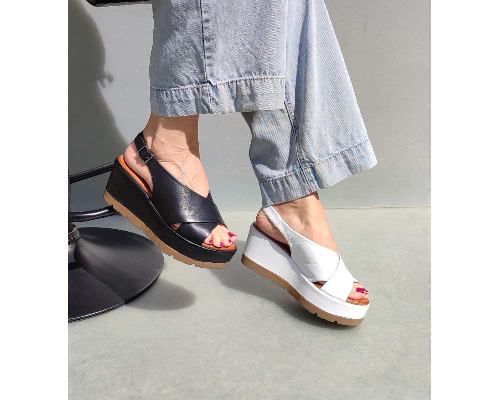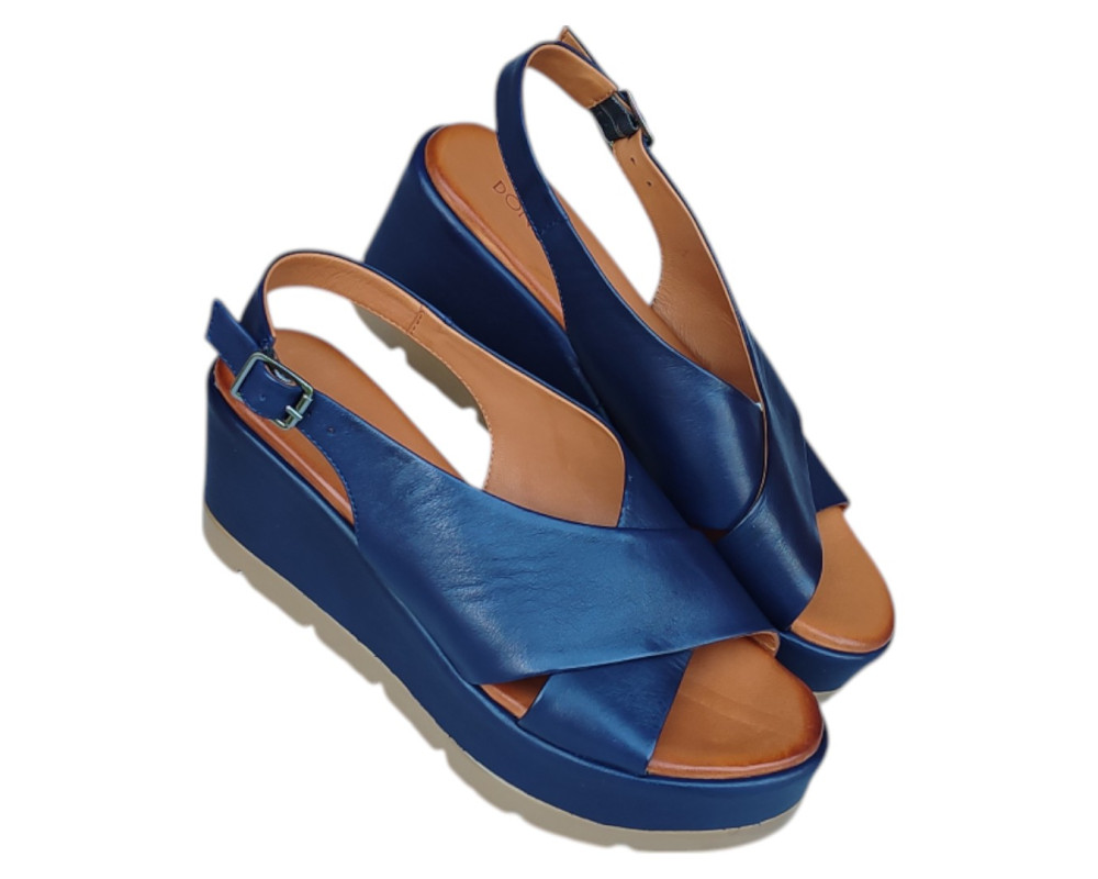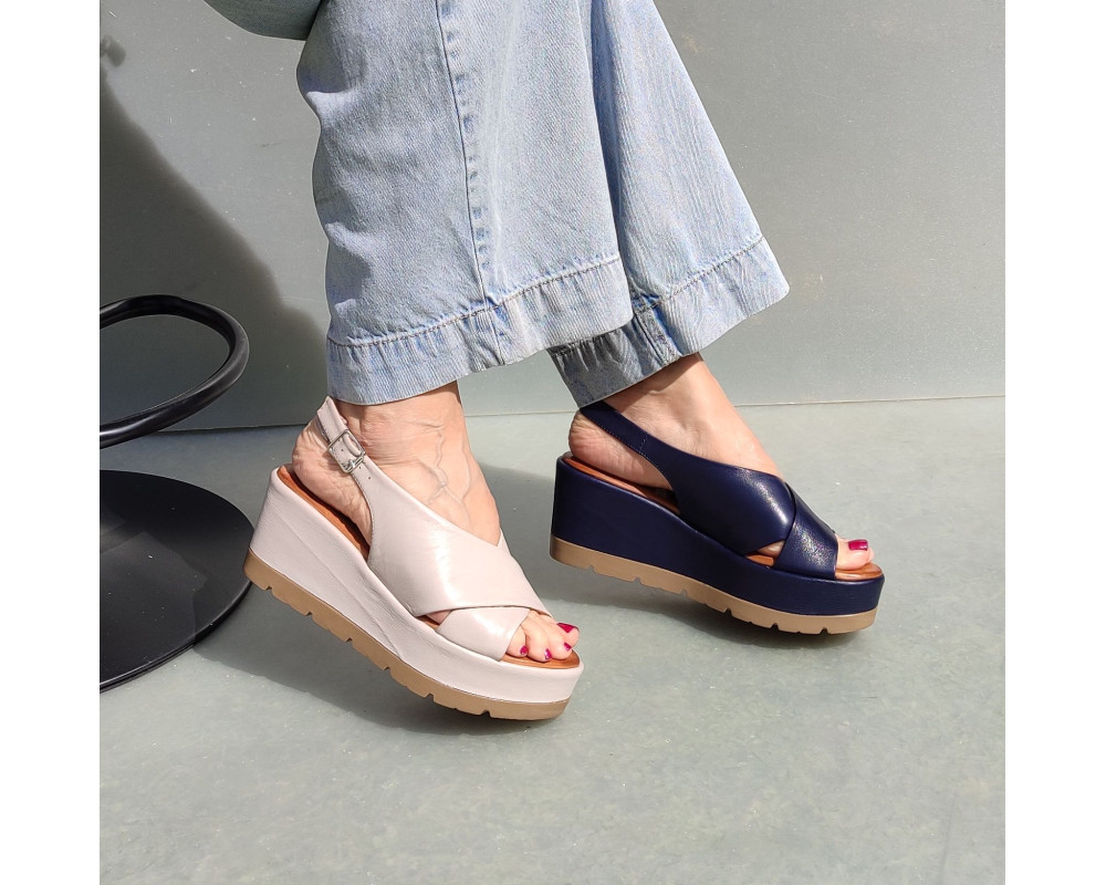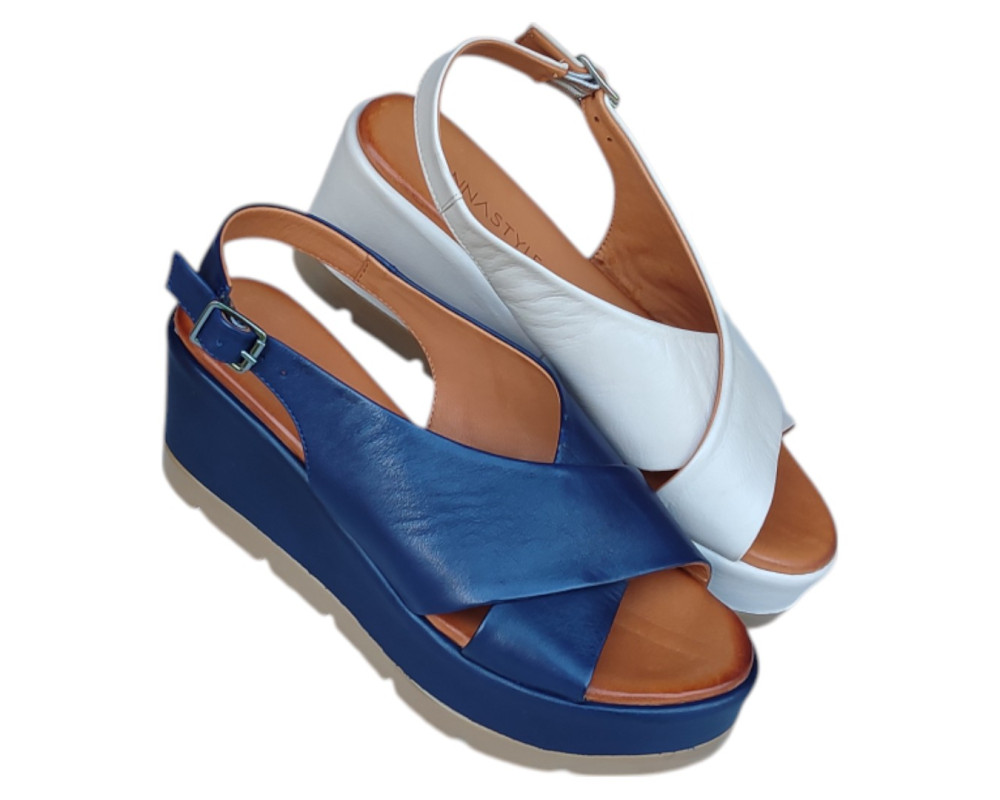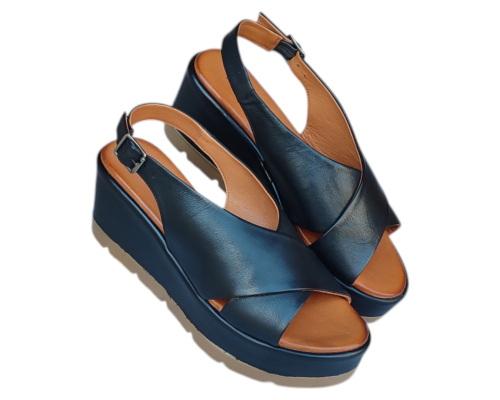 Zenske kozne sandale ART-106.0237 na anatomskoj flexy platformi visine oko 6 cm sa koznim anatomskim uloskom.Veoma udobna mekana i lagana.Kais oko zgloba podesi po sirini.Raspoloziva u teget bez beloj i crnoj boji.